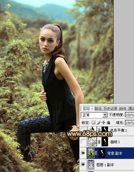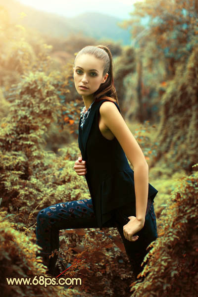 7、对抠出的人物图层简单调色,跟背景融合即可,大致效果如下图。