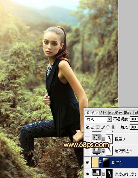 8、新建一个图层,填充颜色:#FADC85,混合模式改为“滤色”,按住Alt键添加图层蒙版,用白色画笔把左上角部分擦出来,给画面增加高光,效果如下图。