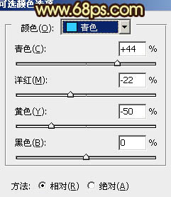 10、按 Ctrl + J 把当前可选颜色调整图层复制一层,不透明度改为:50%,效果如下图。