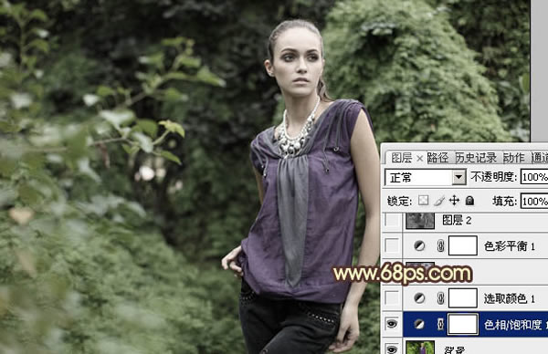 1、打开原图素材,创建色相/饱和度调整图层,适当降低全图饱和度,参数设置如图1,效果如图2。