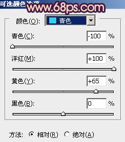 5、创建可选颜色调整图层,对洋红进行调整,参数设置如图14,确定后用黑色画笔把人物部分擦出来,效果如图15。这一步加强背景的紫色。