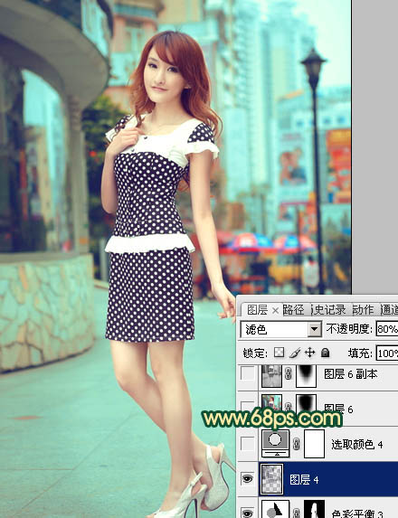 青色图片的调色过程比较简单,只需要用可选颜色等调色工具,把背景部分的主色调成青色调,再适当加强一下层次感和亮度,最后美化一下人物部分即可。