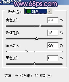 2、再创建可选颜色调整图层,对绿、青、白、中性色进行调整,参数设置如图6 - 9,效果如图10。这一步微调背景部分的颜色,加入更多的青蓝色。