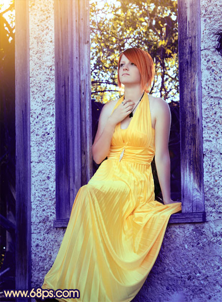 有墙壁或窗户的图片,比较适合调成暗蓝或蓝紫等色调。调色过程也较为简单,大致分析图片的色彩构成后,用可选颜色快速调出主色,人物部分适当调成暖色,这样对比起来,主体非常突出。