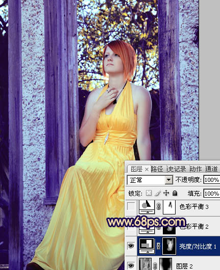 8、创建亮度/对比度调整图层,参数设置如图25,确定后把蒙版填充黑色,用白色画笔把人物脸部擦出来,效果如图26。这一步增加人物脸部的亮度和质感。