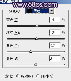 4、创建可选颜色调整图层,对红、黄、白、黑进行调整,参数设置如图6 - 9,效果如图10。这一步微调人物脸部颜色,增强质感。