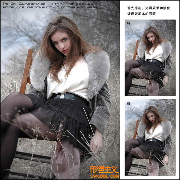冷色图片看上去简单,处理其它还是挺复杂的。首先需要对图片的局部进行美化,修复图片的不足之处。然后再整体润色,色调不能太生硬了,以柔和,梦幻为佳。最后还需要装饰一些冬天的元素,如雪花等。