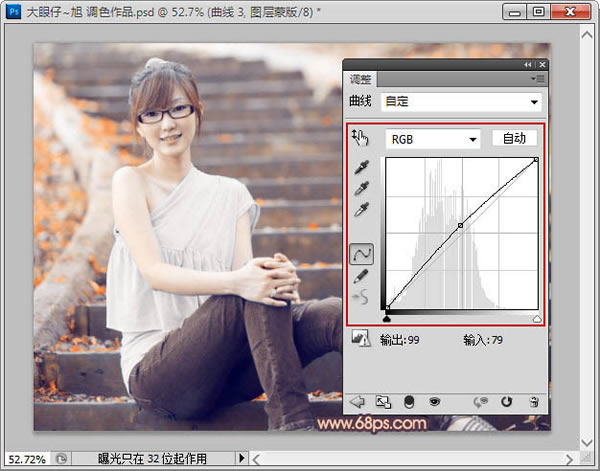 2、创建曲线调整图层,对RGB进行调整,把全图稍微调亮一点,如下图。