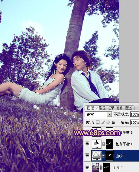 11、用钢笔勾出人物肤色及脸部,然后用曲线及色彩平衡调整图层微调颜色,数值自定。大致效果如下图。