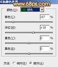 1、打开原图素材,创建可选颜色调整图层,对黄,绿进行调整,参数设置如图1,2,效果如图3。这一步把背景树叶绿色转为橙黄色。