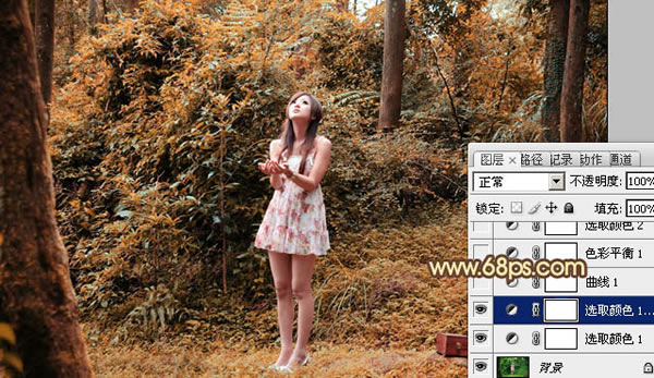 2、按Ctrl + J 把当前可选颜色调整图层复制一层,增加背景部分的暖色,效果如下图。