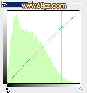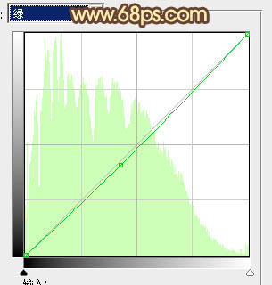 6、创建曲线调整图层,对绿色通道进行调整,参数设置如图18,效果如图19。这一步给图片增加褐色。