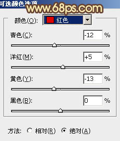11、创建可选颜色调整图层,对红色进行调整,参数设置如图26,确定后把图层不透明度改为:70%,效果如图27。这一步给图片增加红褐色。