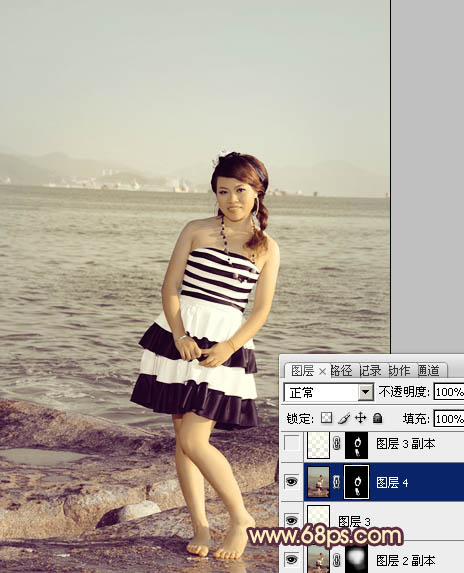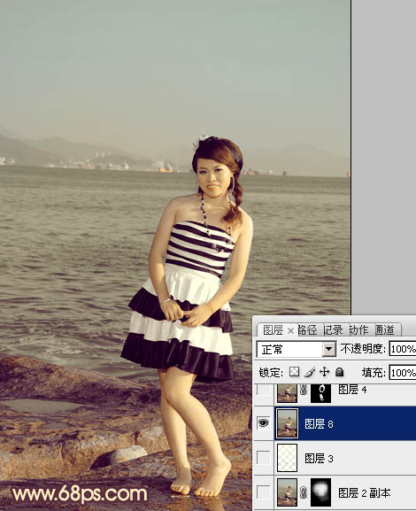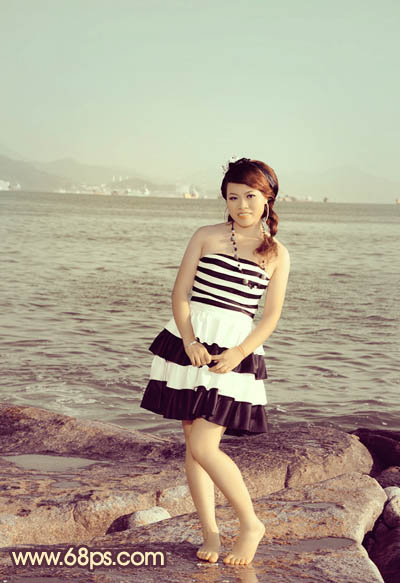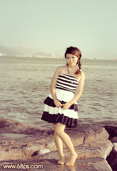 海景图片除了用天然的蓝青色外,褐色也是非常合适的,同时也是比较容易控制的颜色,处理的时候可以先简单消除图片的杂色,并调成统一的褐色,然后在高光渲染一些淡色暖色或冷色即可。