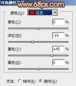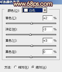 12、创建可选颜色调整图层,对红、黄、白进行调整,参数设置如图17 - 19,效果如图20。这一步微调主色及高光部分的颜色。