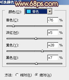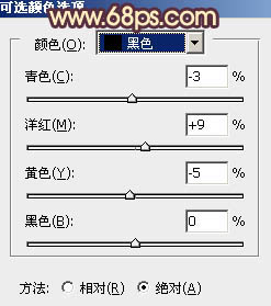 2、创建可选颜色调整图层,对红、青、黑进行调整,参数设置如图2 - 4,效果如图5。这一步把图片的红色转为暗黄色,青色转为暗绿色。