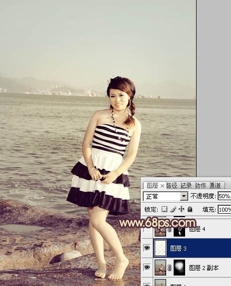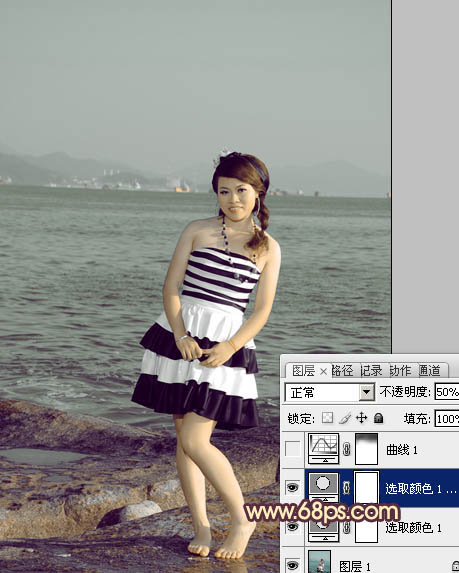 3、按Ctrl + J 把当前可选颜色调整图层复制一层,加强图片的褐色,确定后把图层不透明度改为:50%,效果如下图。