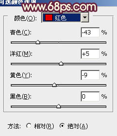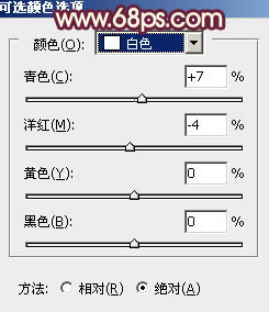 6、再创建可选颜色调整图层,对红、黄、蓝、白、中性、黑进行调整,参数设置如图18 - 23,效果如图24。这一步主要是增加图片高光部分的淡绿色,并加强图片的亮度。