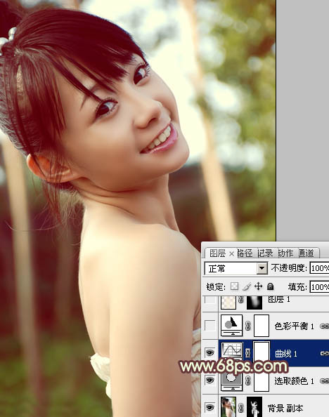 青黄色比较适合夏季外景图片,调色过程也比较简单。先简调整图片整体明暗,然后把背景主色转为黄绿色,高光部分加入一些淡青色即可。
