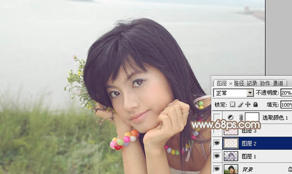 2、按Ctrl + Alt + 2 调出高光选区,新建一个图层填充淡黄色:#F0E5DD,不透明度改为:20%,效果如下图。这一步简单增加图片的亮度。