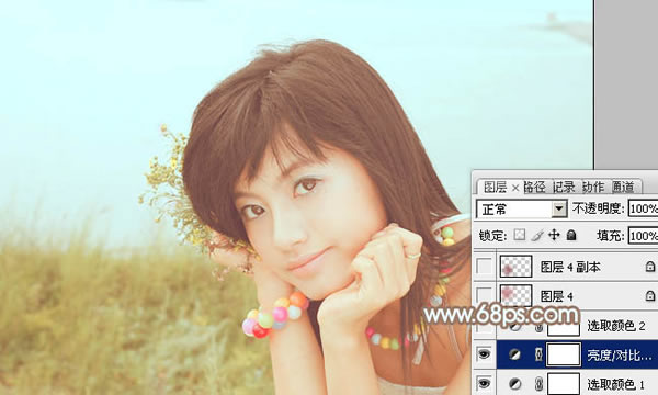 5、创建亮度/对比度调整图层,适当增加图片的对比度,参数设置如图8,效果如图9。