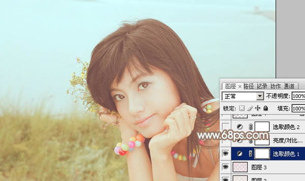 素材图片拍摄的比较清淡比较适合淡系色彩调色。处理的适合只需要增加背景部分的暖色,高光部分渲染一些淡青色等即可。