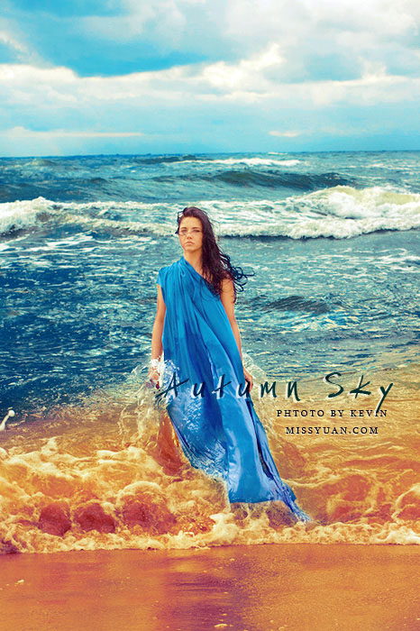 8、新建可选颜色调整图层,对蓝色进行调整,用黑色画笔把天空及人物部分擦出来。
