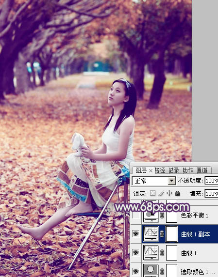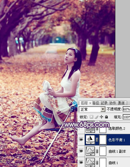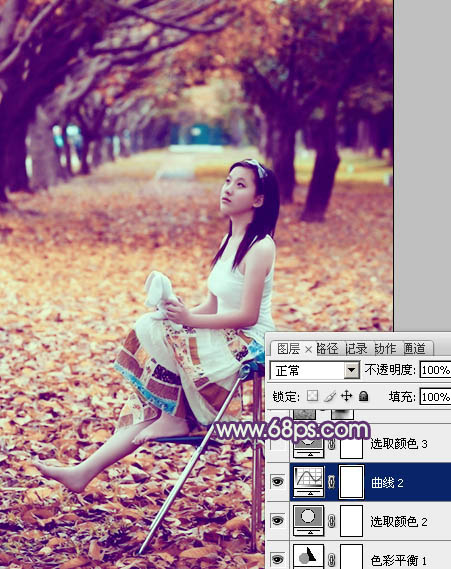 橙紫色是比较常见的秋季色。调色方法也比较简单:可以根据图片的颜色构成,选择合适的方法把图片调成暖色,然后给暗部增加冷色,再简单美化一下人物即可。