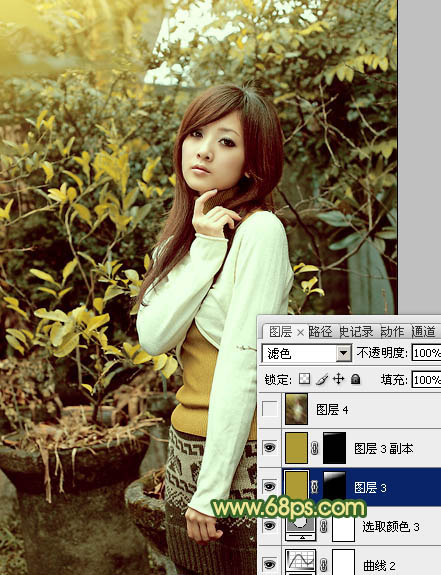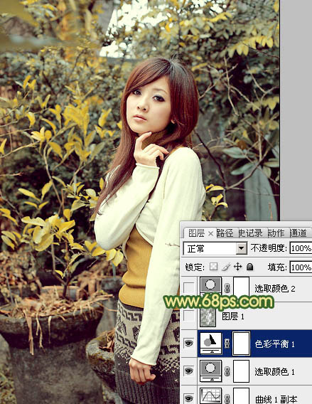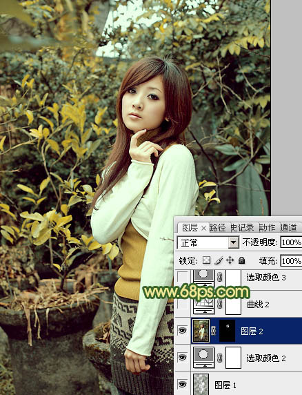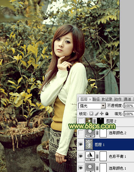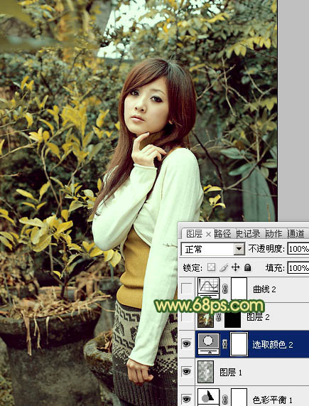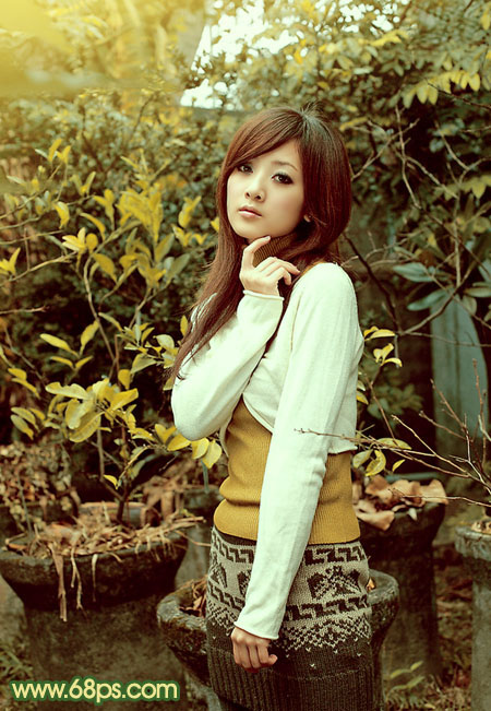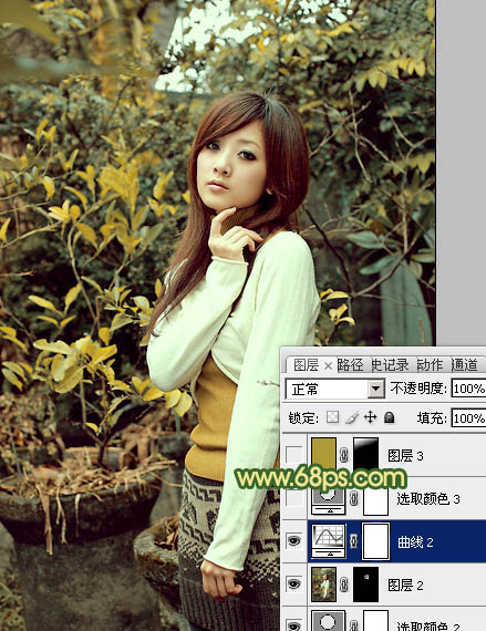 黄绿色也是一种常见色,调色方法有很多,可直接把图片的中间调及高光部分调成橙黄色,暗部颜色转为暗绿色或青绿色即可。