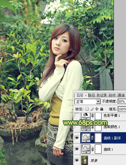 2、按Ctrl + J 把当前曲线调整图层复制一层,不透明度改为:30%,效果如下图。