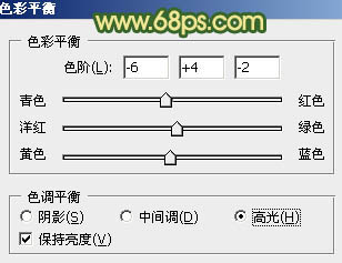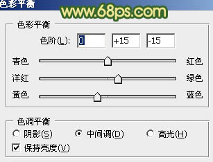 4、创建色彩平衡调整图层,对阴影、中间调、高光进行调整,参数设置如图12 - 14,效果如图15。这一步主要给图片的高光部分增加淡黄色,暗部增加青色。