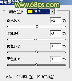 9、创建可选颜色调整图层,对黄,黑进行调整,参数设置如图24,25,效果如图26。这一步给图片增加一些橙黄色。