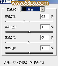 2、创建可选颜色调整图层,对红、黄、绿、洋红、黑进行调整,参数设置如图5 - 9,效果如图10。这一步把图片整体颜色调淡,转为淡黄色。
