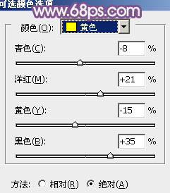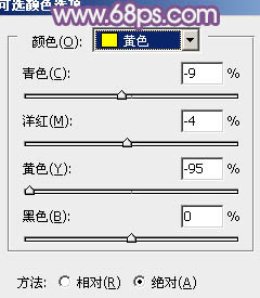 1、打开素材图片,创建可选颜色调整图层,对黄、绿、黑进行调整,参数设置如图1 - 3,效果如图4。这一步主要把图片背景部分的绿色调淡。