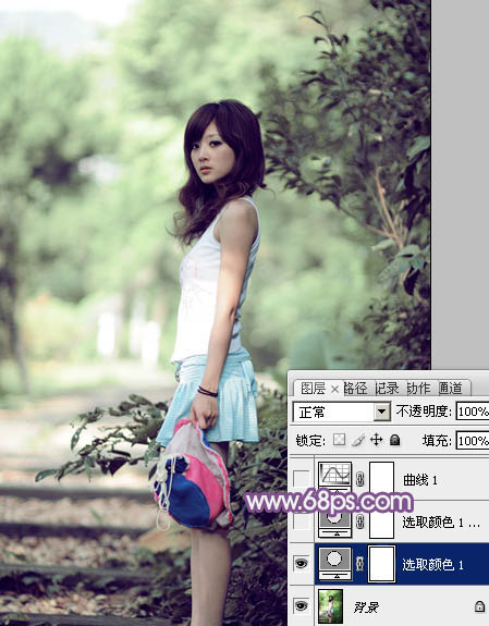 2、按Ctrl + J 把当前可选颜色调整图层复制一层,增加图片背景淡绿色,效果如下图。