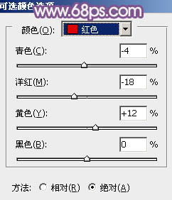 9、创建可选颜色调整图层,对红、白、黑进行调整,参数设置如图21 - 23,效果如图24。这一步稍微把人物部分调红润。