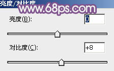 10、创建亮度/对比度调整图层,适当增加图片对比度,参数设置如图25,确定后把蒙版填充黑色,用白色画笔把人物脸部及肤色部分擦出来。再适当降低图层不透明度,效果如图26。这一步加强人物肤色部分对比度。