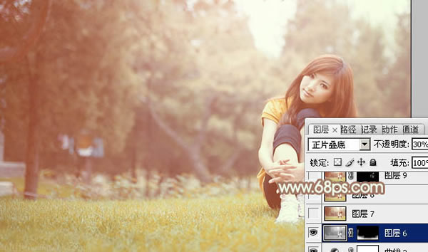 10、新建一个图层,按Ctrl + Alt + Shift + E 盖印图层,按Ctrl + Shift + U 去色,混合模式改为“正片叠底”,不透明度改为:30%,按住Alt键添加图层蒙版,用白色画笔把底部需要变暗的部分擦出来,如下图。