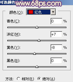 6、创建可选颜色调整图层,对红、黄、白、中性、黑进行调整,参数设置如图18 - 22,效果如图23。这一步微调图片的暖色,并给高光部分增加淡黄色。