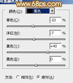 2、创建可选颜色调整图层,对黄、绿、白、中性、黑进行调整,参数设置如图2 - 6,效果如图7。这一步主要给图片增加一些黄绿色。