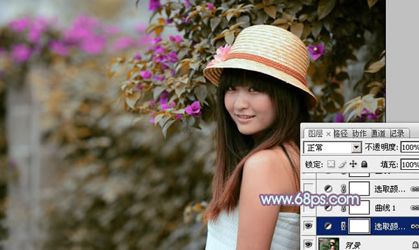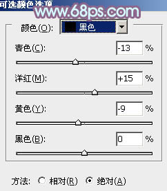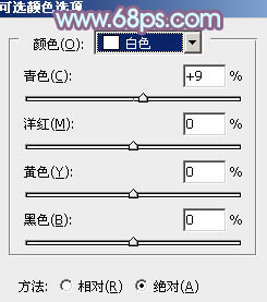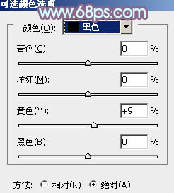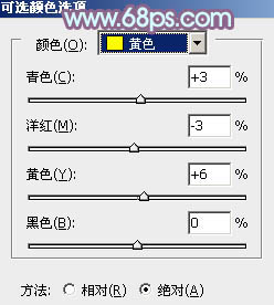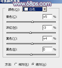 1、打开素材图片,创建可选颜色调整图层,对黄、绿、青、白、黑进行调整,参数设置如图1 - 5,效果如图6。这一步把背景颜色转为黄褐色。