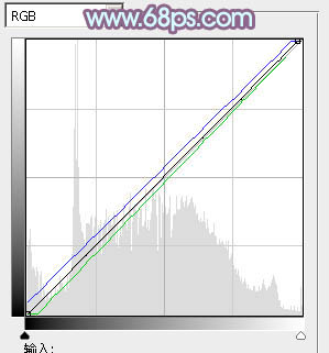 4、创建曲线调整图层,对RGB、绿、蓝进行微调,参数设置如图17,效果如图18。这一步给图片暗部增加蓝紫色。
