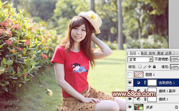 素材图片人物衣服颜色以红色为主,调色的时候可以把背景及周围颜色调红并调淡一点,这样人物与整体会更融合。后期的高光及暗部可按自己的喜好渲染。
