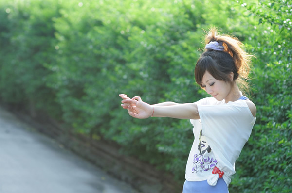 素材图片基本上以绿色为主,转为暖色的时候,只需要把绿色转为橙黄色,并保留暗部的青绿色。再把整体调淡调柔和即可。