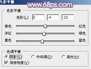 10、创建色彩平衡调整图层,对阴影、中间调、高光进行调整,参数设置如图24 - 26,确定后把图层不透明度改为:50%,效果如图27。这一步微调暗部及高光部分的颜色。