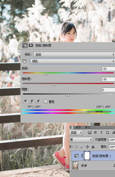 7、把绿色也调整一下,因为这个片子大面积的颜色还是以芦苇为主,青草和后面的绿树显得多余,咱就弃而不用。