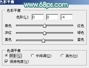 9、再创建色彩平衡调整图层,对阴影、中间调、高光进行调整,参数设置如图21 - 23,确定后按Ctrl + Alt + G 创建剪贴蒙版,效果如图24。这一步微调人物肤色。