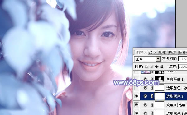 8、按Ctrl + J 把当前可选颜色调整图层复制一层,不透明度改为:20%,效果如下图。
