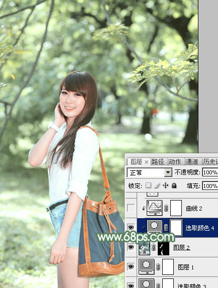 1、打开素材图片,创建可选颜色调整图层,对黄,绿进行调整,参数设置如图1,2,效果如图3。这一步把背景部分的绿色稍微调淡一点。