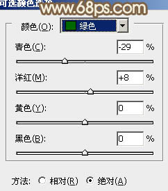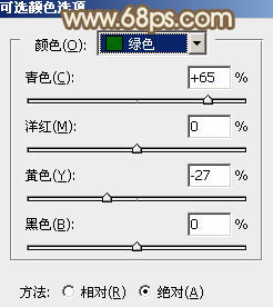 7、创建可选颜色调整图层,对红、黄、绿进行调整,参数设置如图18 - 20,效果如图21。这一步主要把图片中的绿色转为稍淡的黄绿色。